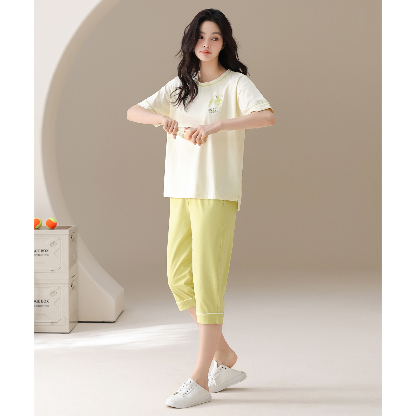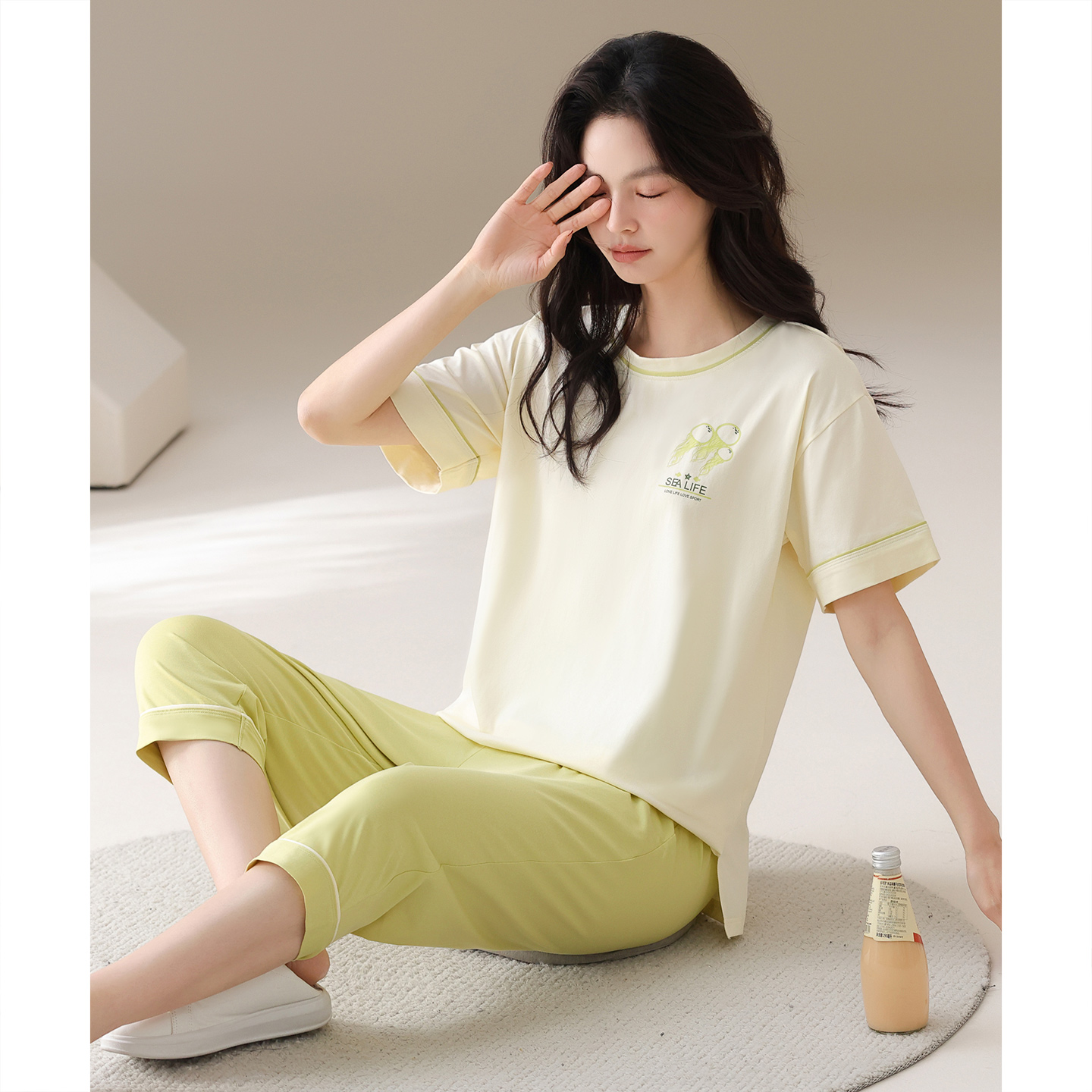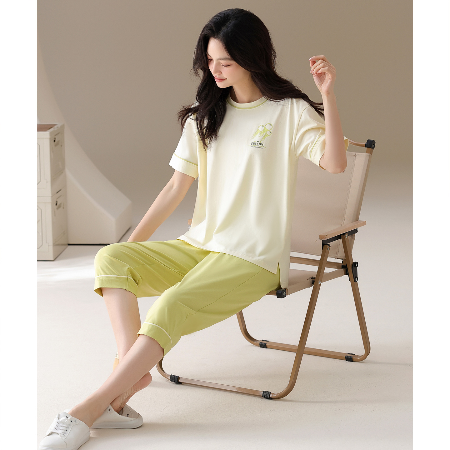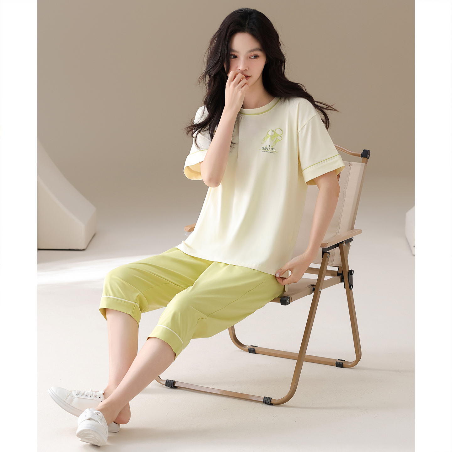七分裤 短袖 大码 夏天女款 芬腾睡衣女士夏季 甜美家居服套装 纯棉薄款