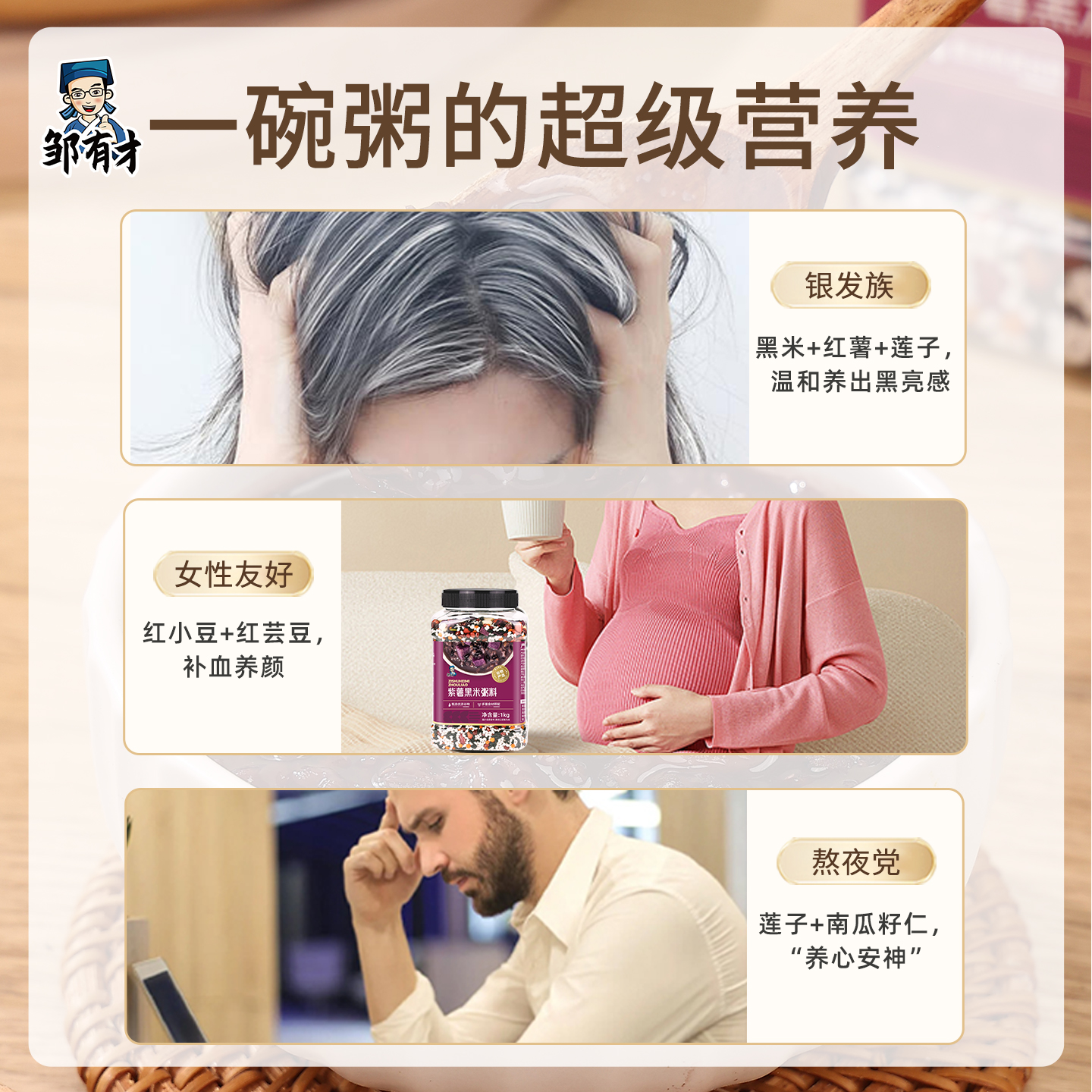 紫薯黑米莲子粥罐装 原料五谷杂粮组合粗粮粥孕妇八宝粥早餐杂粮粥