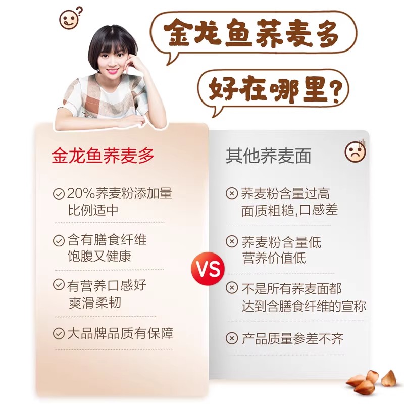金龙鱼荞麦多麦芯挂面150g 粗粮杂粮面方便速食挂面 4袋家用小包装