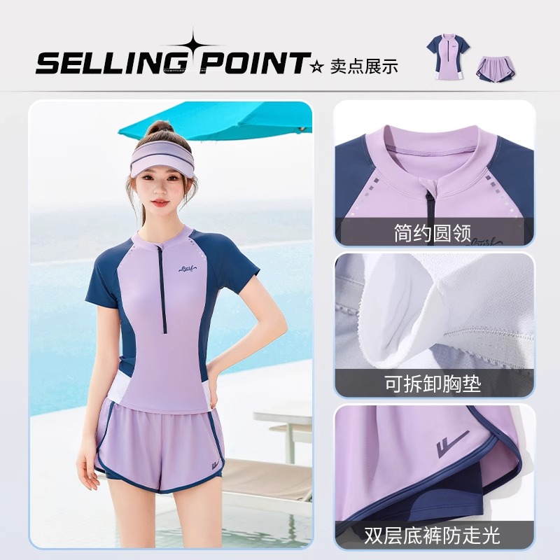 回力泳衣女保守分体2025新款 高级感防晒速干遮肉游泳馆泡温泉泳装