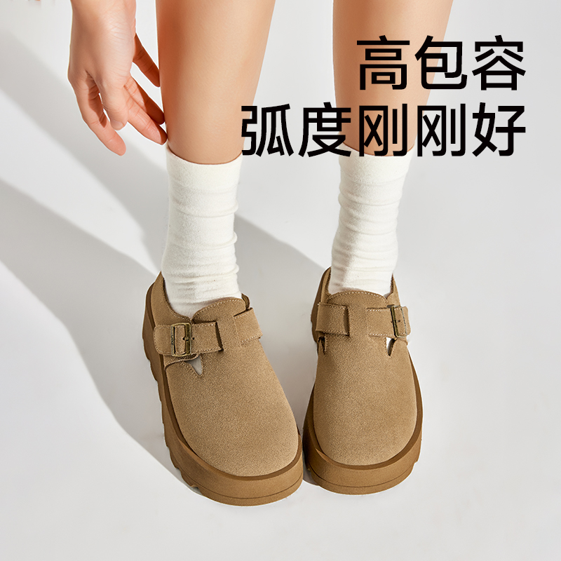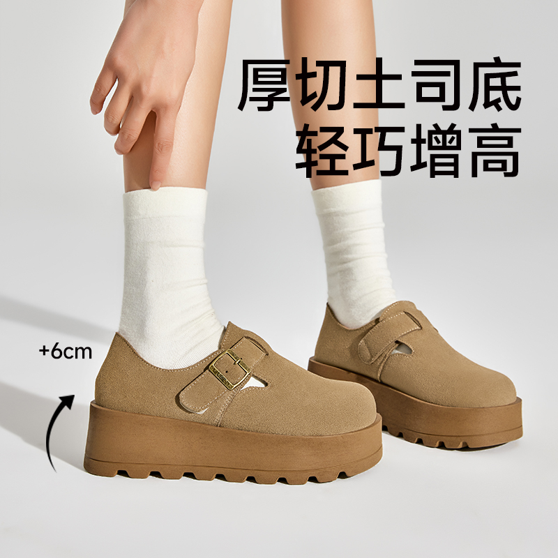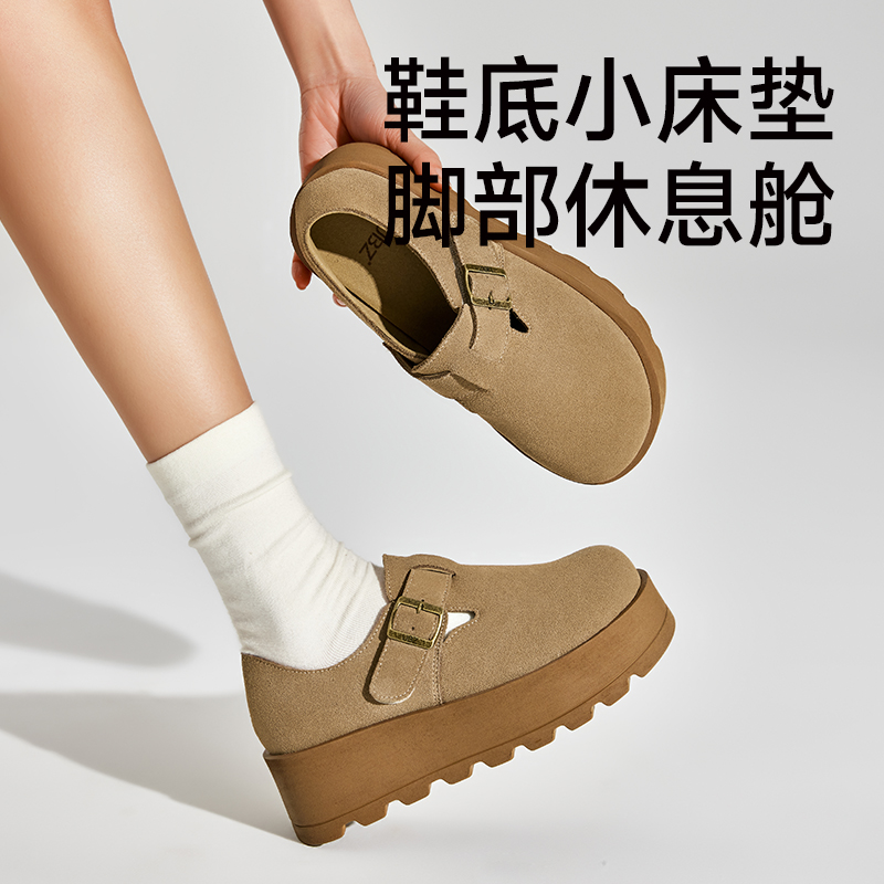 魔术贴真皮增高博肯女鞋 女外穿2025秋新款 防水厚底全包勃肯鞋 UBZ