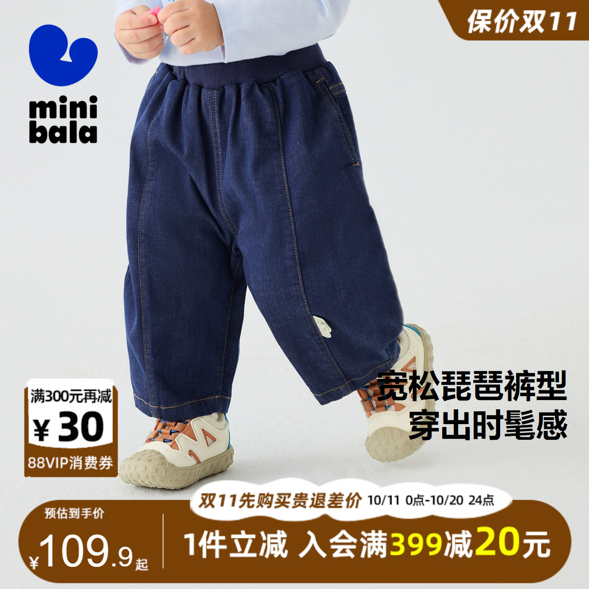 宝宝弹力宽松休闲牛仔裤 迷你巴拉巴拉男女童软牛仔长裤 2025春新款