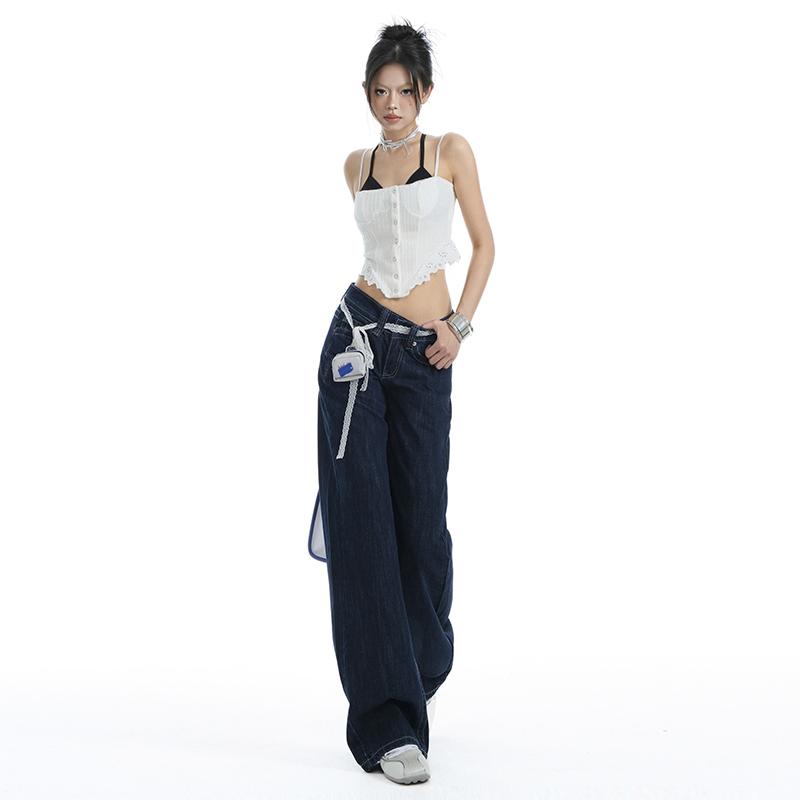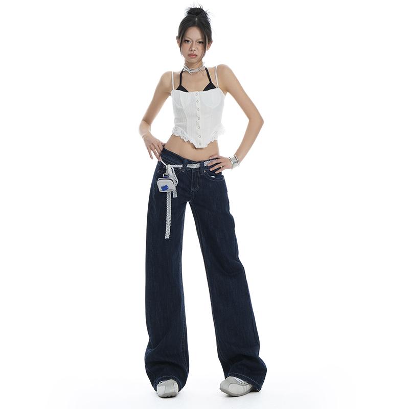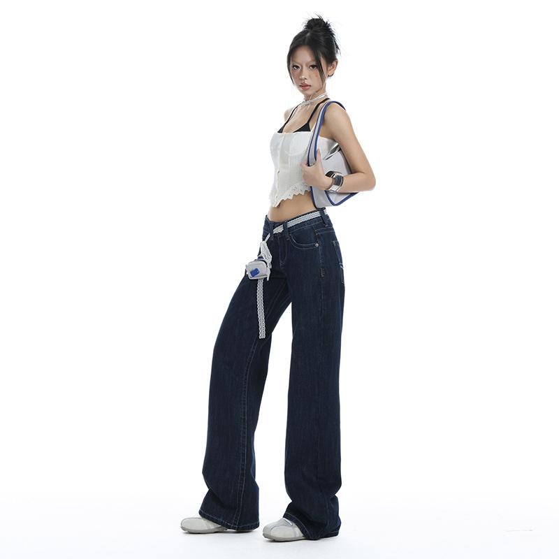 女休闲显瘦垂感拖地长裤 直筒牛仔裤 原牛色辣妹低腰窄版 KRO春季