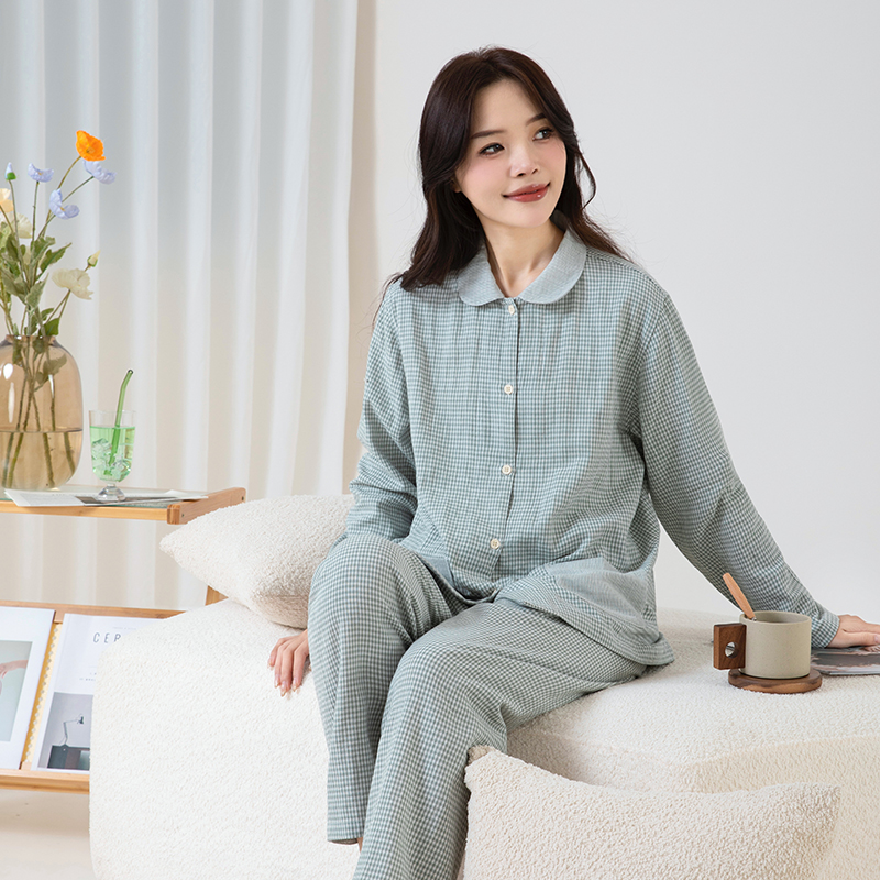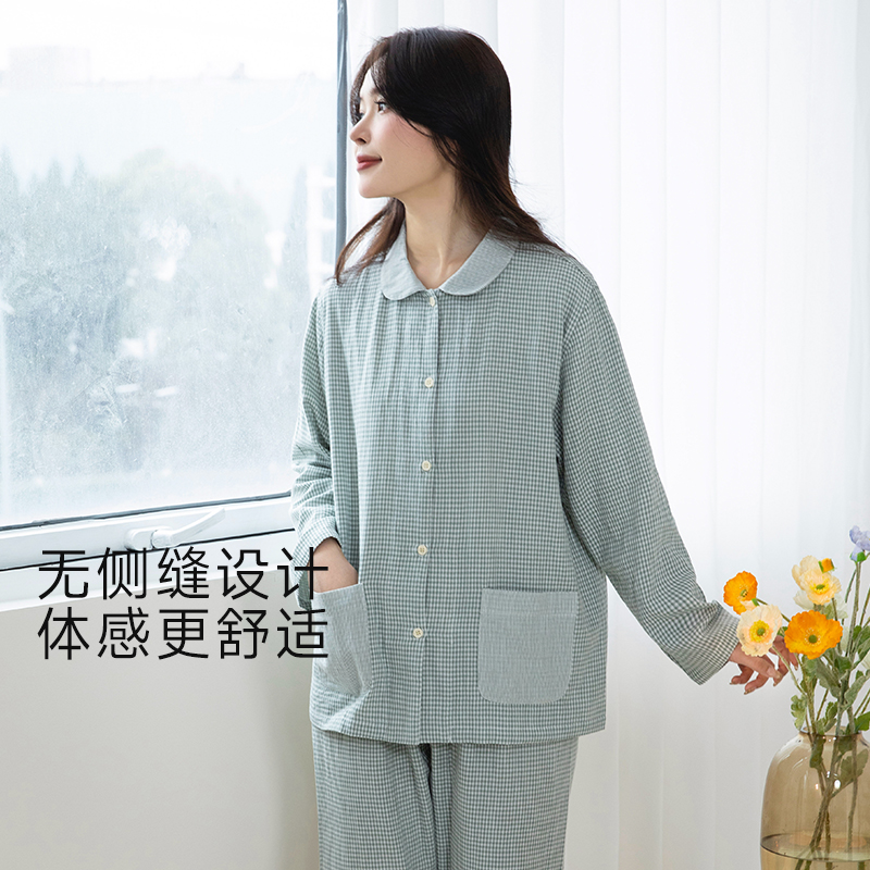 全棉睡衣女士男情侣款 田园家居服套装 双层纱南法经典 宜色家25新款