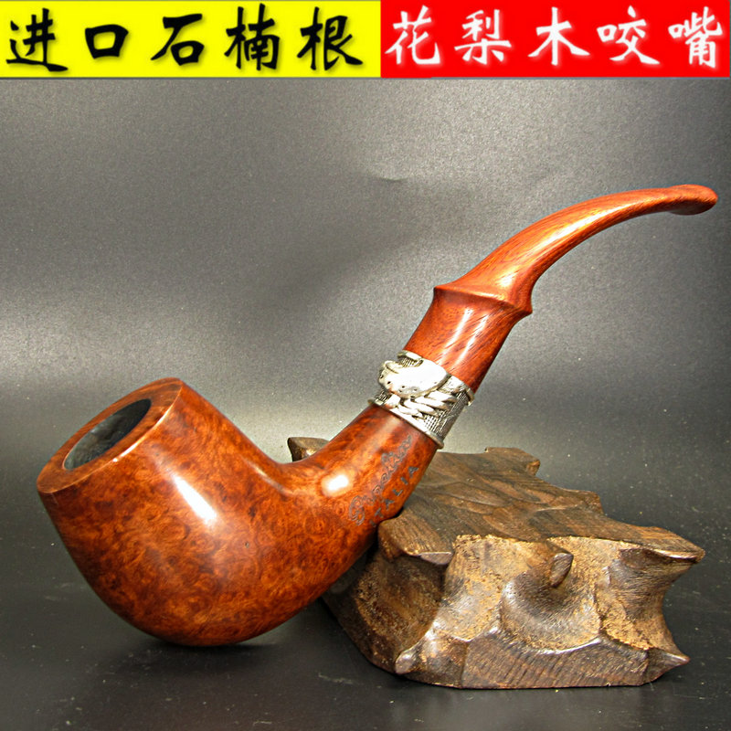 便携天然实木男士 原木进口石楠根 过滤老式 弯式 烟斗 花梨木咬嘴