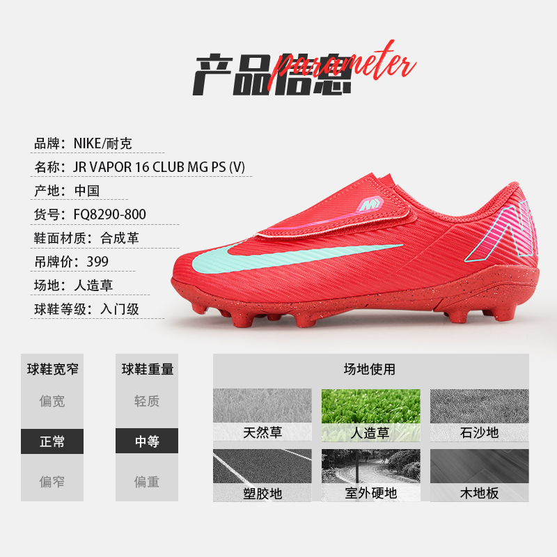 Joma儿童足球鞋 子 男女童小学生魔术贴青少年训练人造草地TF碎钉鞋