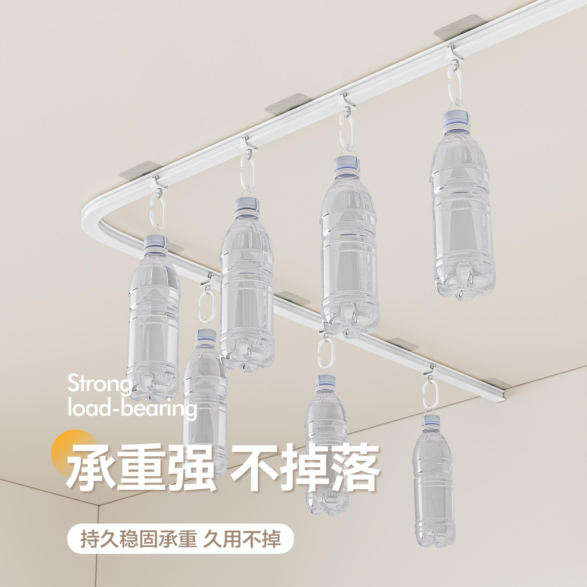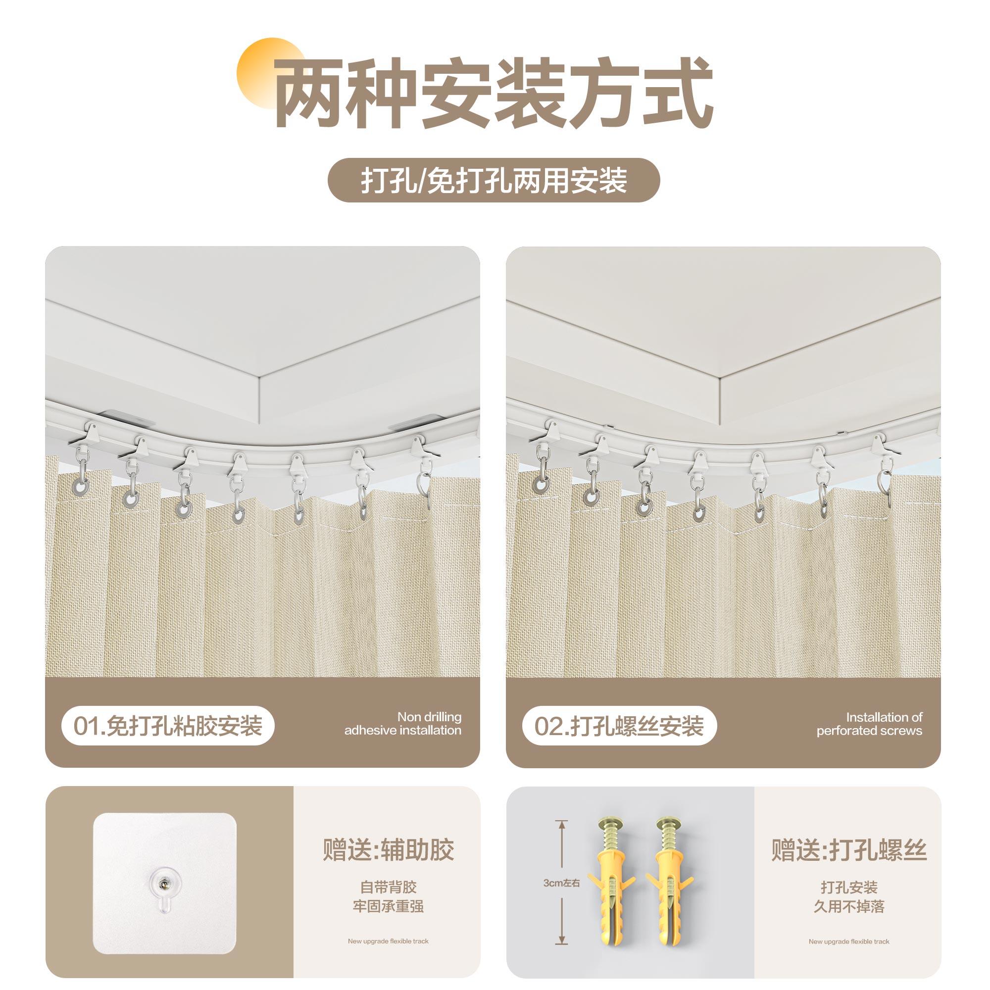 静音滑轮单轨滑道 侧装 可弯曲窗帘轨道阳台转角 U型窗帘杆滑轨顶装