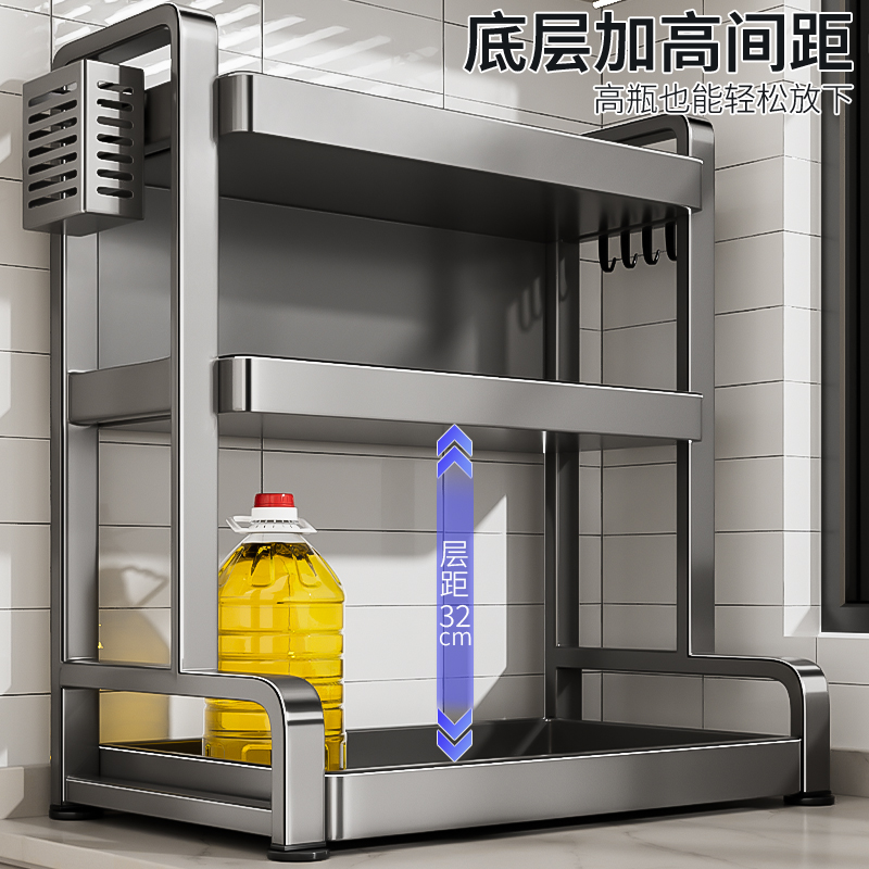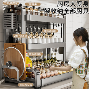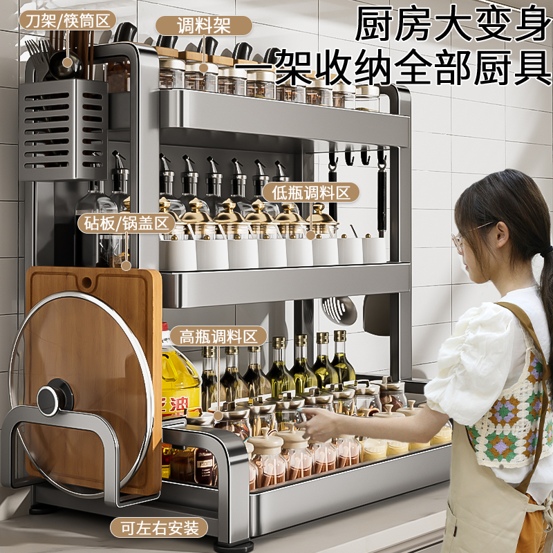 不锈钢厨房置物架多功能台面调料品架子调料架调味罐调味料收纳架