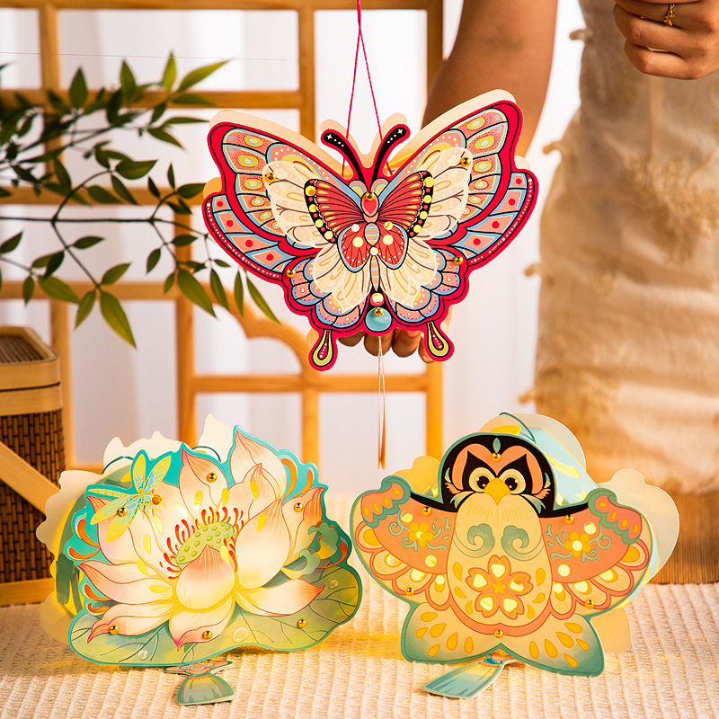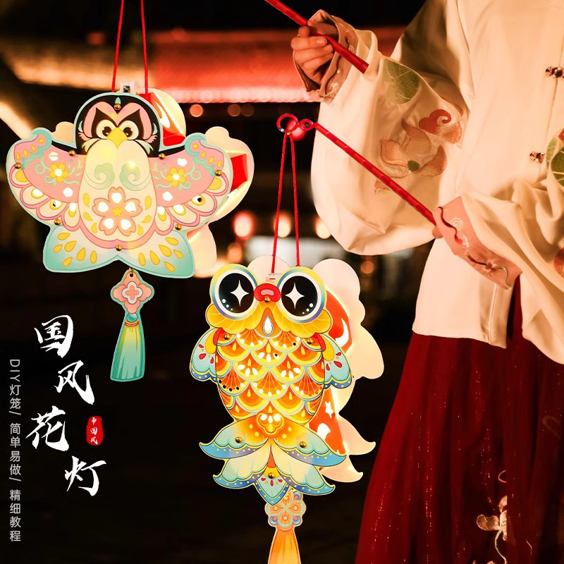 2025中秋节灯笼莲花儿童手工DIY材料小花灯手提发光古风宫灯国潮