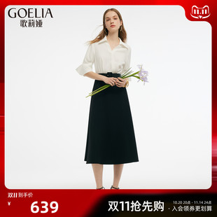 歌莉娅连衣裙女秋季 高级感气质蕾丝拼接黑色丝绒裙1C1R4H470 新款