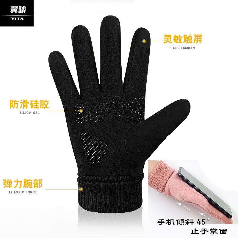 冬季 电动车手套加厚加绒保暖麂皮绒骑行防寒触屏男女士防风手套