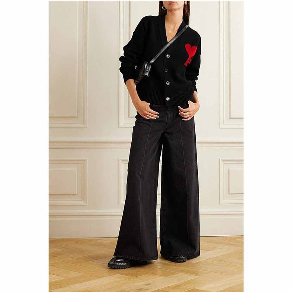 LOGO羊毛V领针织开衫 1h可退 大爱心经典 AMIPARIS 毛衣 香港直邮