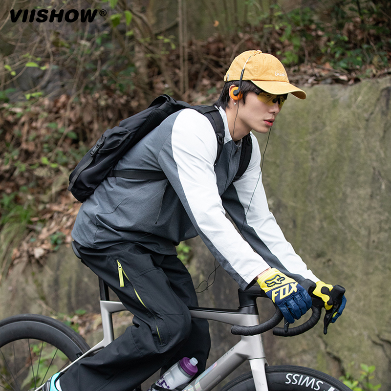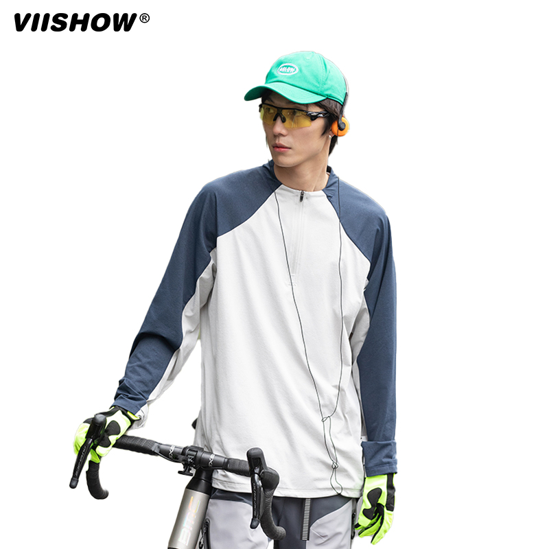 VIISHOW山系户外撞色拼接速干长袖 宽松百搭休闲上衣 T恤男女春季