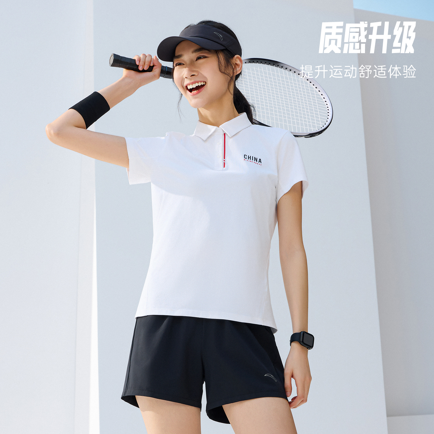 新款 女夏季 商务翻领t恤运动上衣162527131 正肩短袖 安踏速干polo