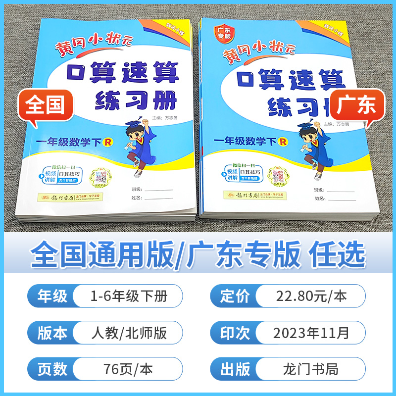 口算速算练习册一二三四五六年级上册下册数学人教北师版 黄冈小状元 同步练习册口算题卡天天练计算题强化专项训练 促销 旧版