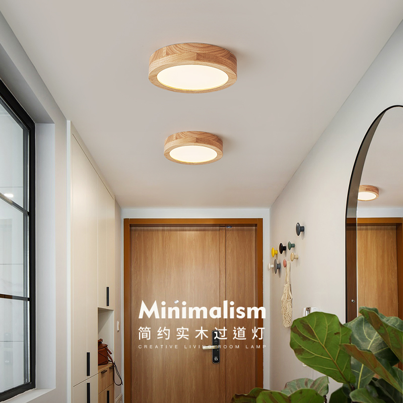 北欧吸顶灯过道灯阳台灯过道玄关衣帽间入户灯简约日式 实木led灯