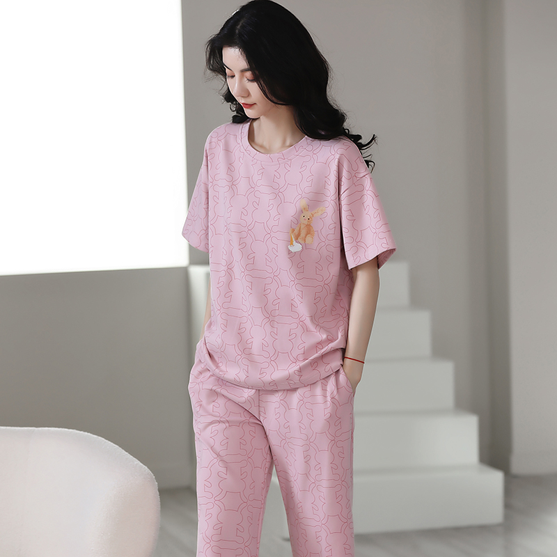 七分裤 纯棉睡衣女短袖 夏爆款 薄款 2022年新款 可外穿家居服套装 夏季