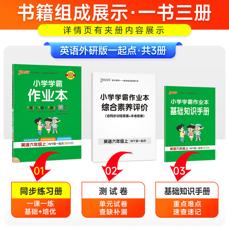英语小学学霸作业本六年级上下册课本同步练习册每日一提优训练学生练习题达标测试卷子教材天天练PASS绿卡图书 一起点 外研版