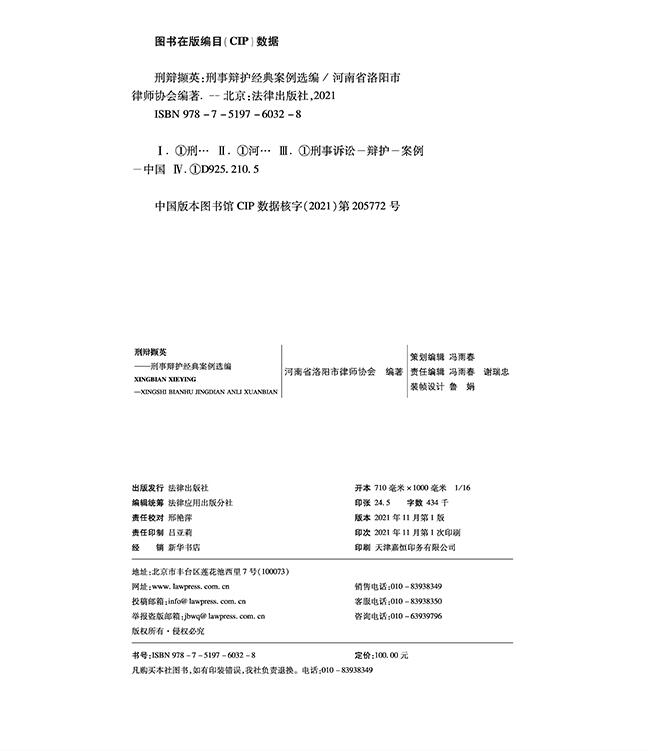 案例选编 河南省洛阳市律师协会编著 一线律师 2021新 法律出版 刑事辩护经典 办案实践案例典型辩护思路 社9787519760328 刑辩撷英