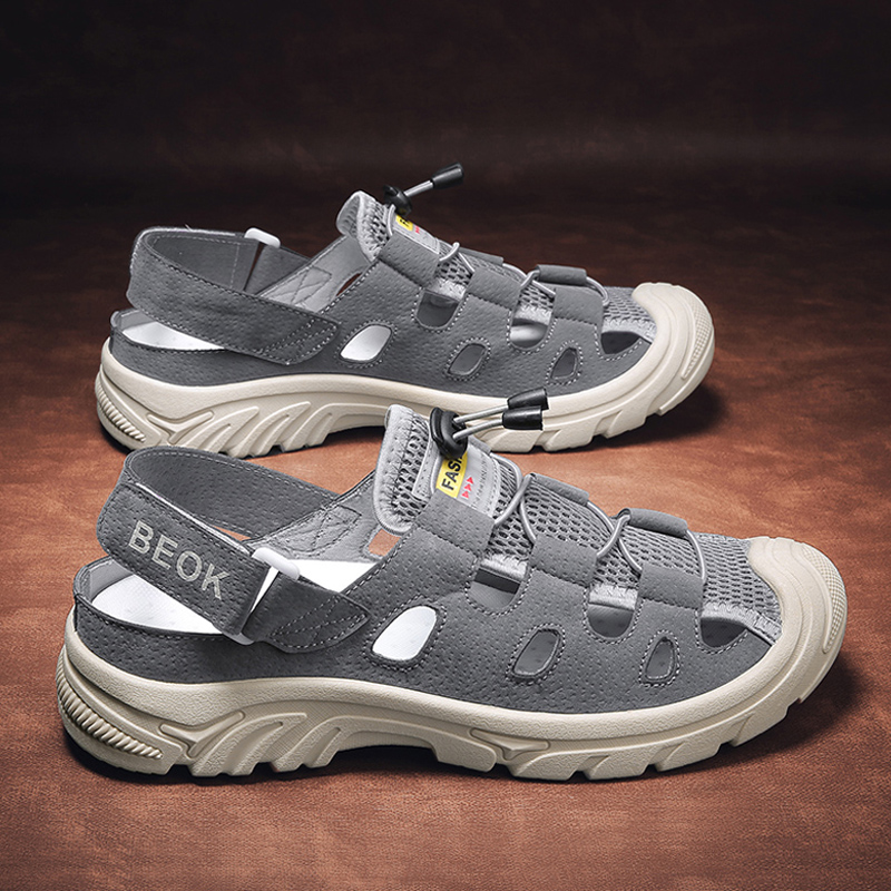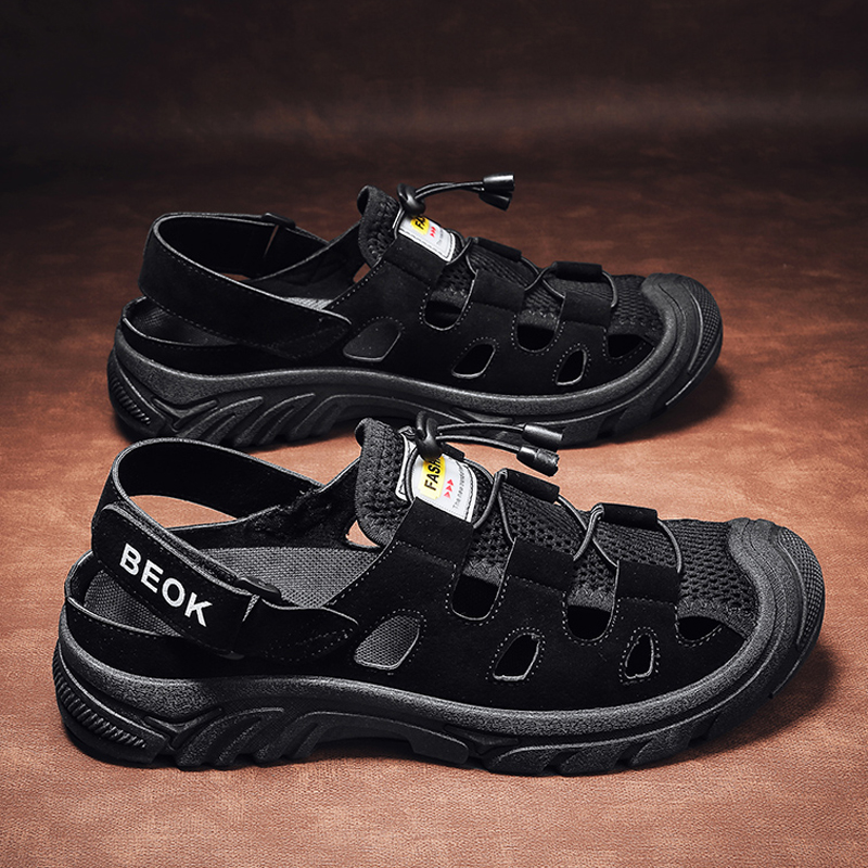 沙滩鞋 男防滑软底包头拖鞋 男外穿大码 休闲凉鞋 明星同款 夏季 洞洞鞋