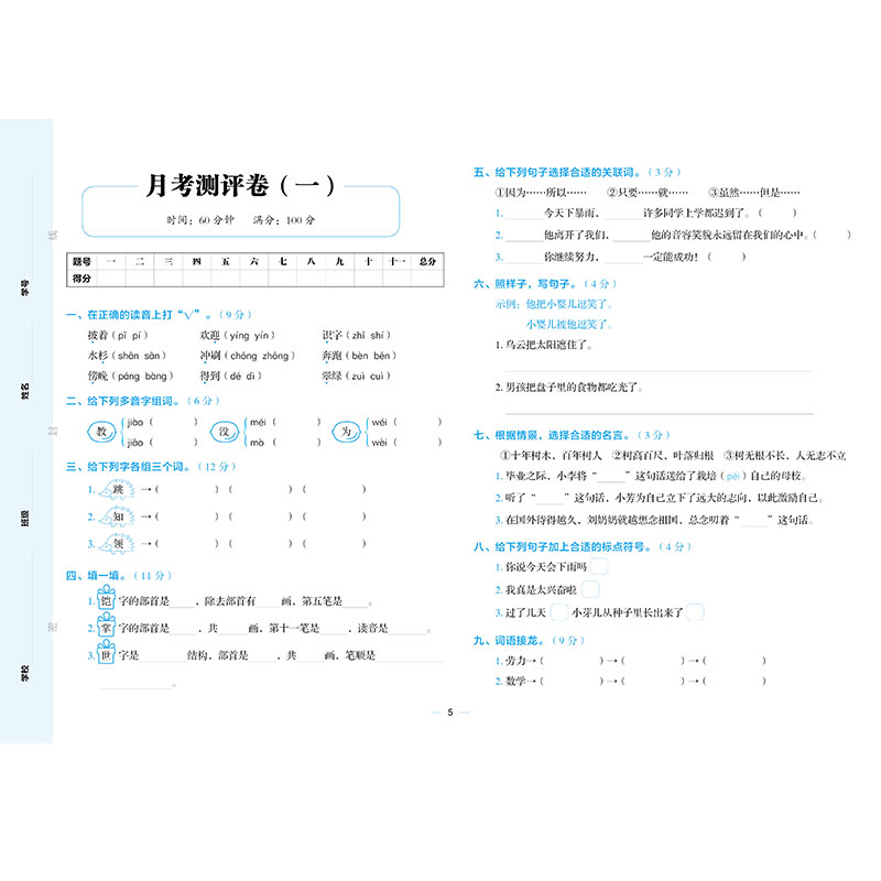 习题同步配套练考双色分类训练巩固 月考专项期中期末试卷小学阶段通用版 学霸课堂 全能达标练考卷语文呢二年级上册学期单元