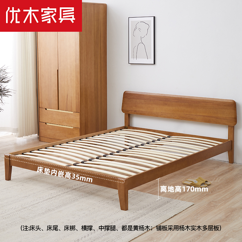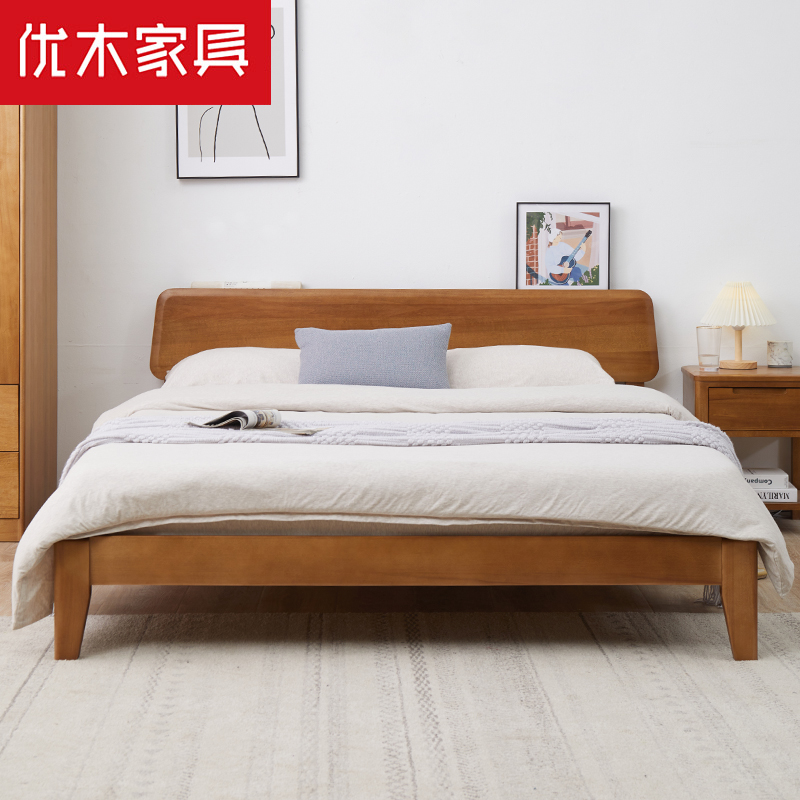 优木家具实木床1.5米双人床单人床1.2米杨木床头带插座北欧简约