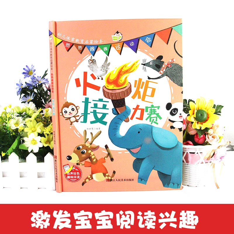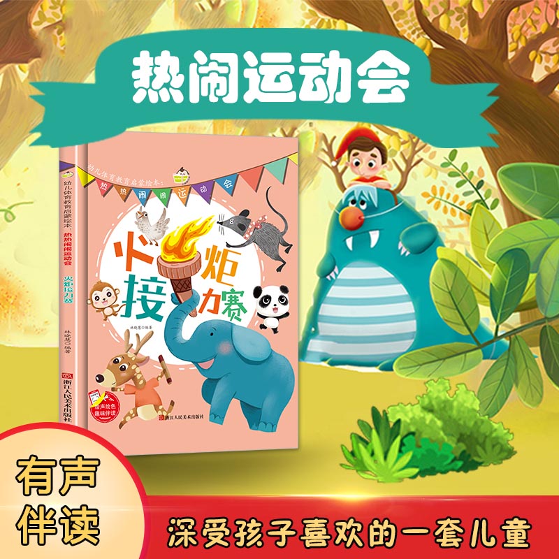 6岁亲子共读儿童早教认知睡前硬壳硬皮故事书 书籍小班中班大班宝宝3 热热闹闹运动会小火炬接力赛 幼儿体育教育启蒙绘本幼儿园正版