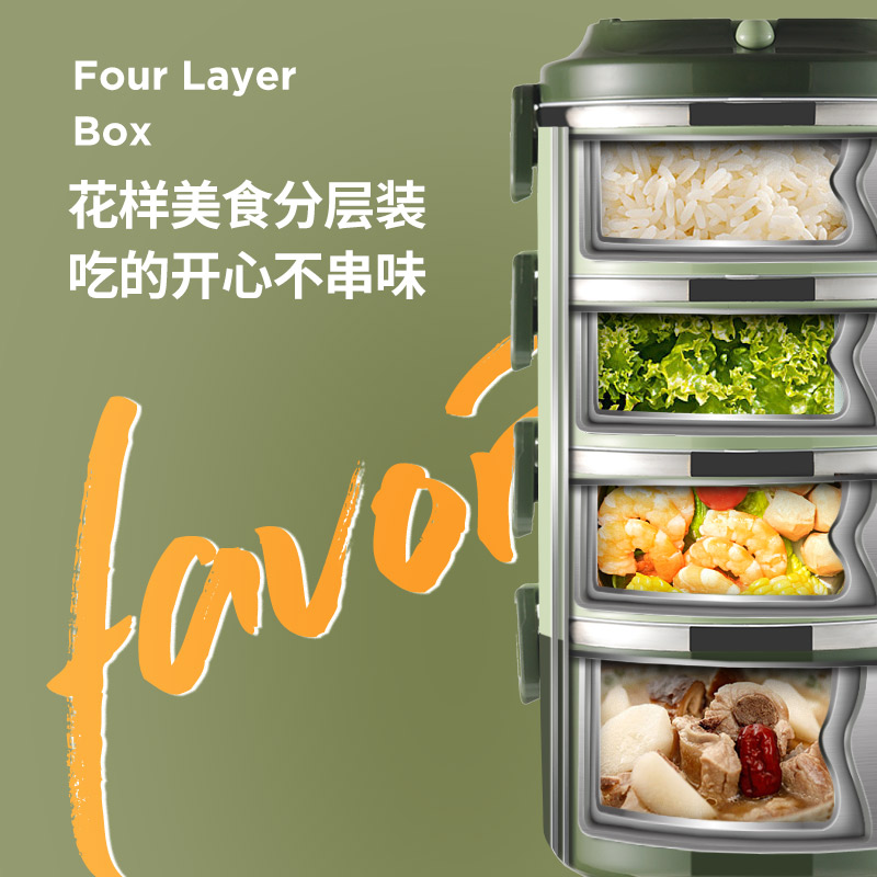 爱仕达多层保温饭盒304不锈钢分隔型上班族便当餐盒携桶便携