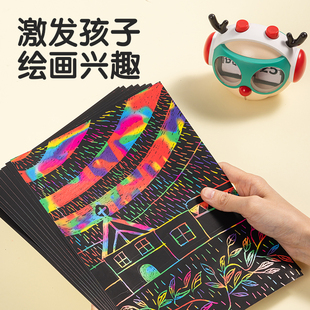 得力刮画纸儿童炫彩学生美术彩色刮刮画黑色幼儿园16开8K手工diy