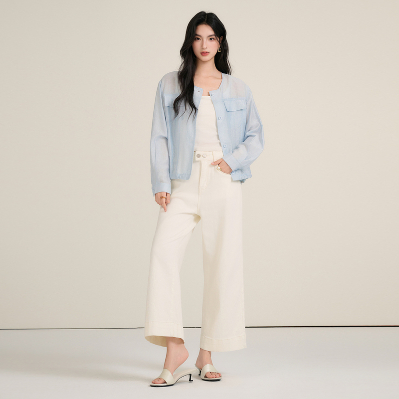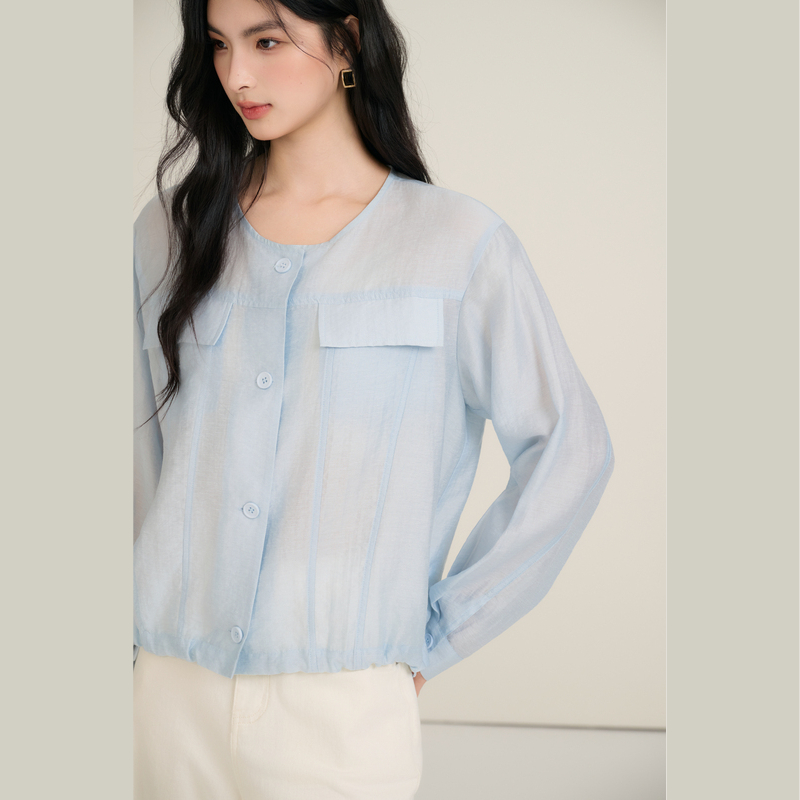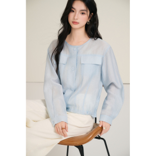 圆领轻薄小个子短款 Basic 女2025新款 百家好莱赛尔衬衫 上衣 House