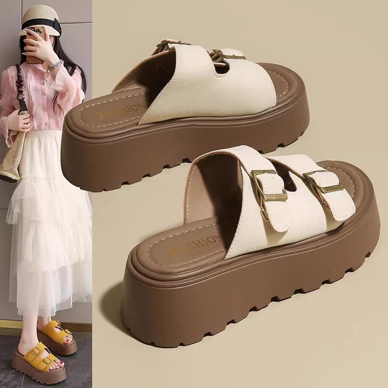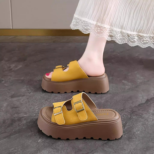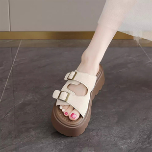 勃肯显高女款 踩屎感厚底沙滩凉鞋 外穿2025新款 女夏季 小个子凉拖鞋