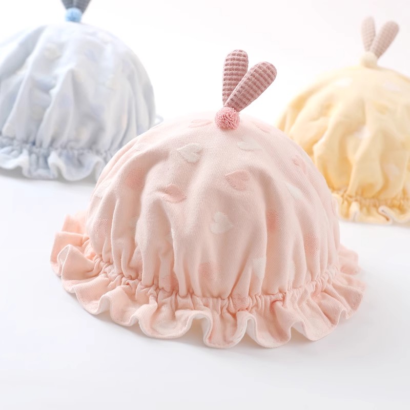婴儿帽子春秋季 可爱超萌宝宝女婴幼儿男新生儿秋冬纯棉渔夫帽 薄款