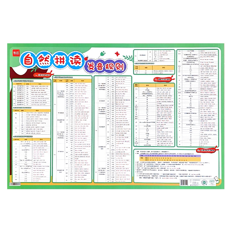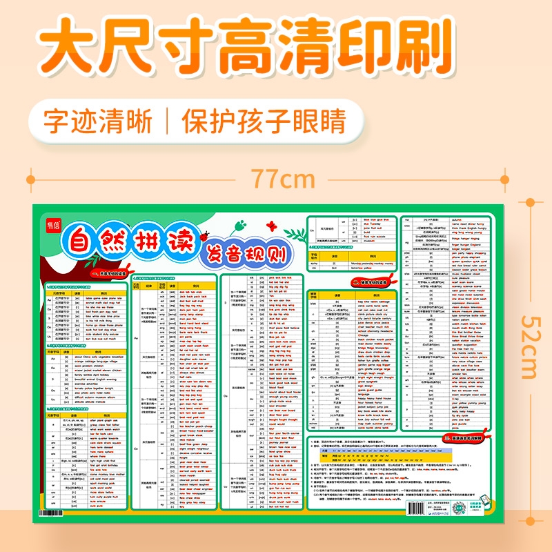 小学英语自然拼读挂图入门48个国际音标发音规则表启蒙英语视频有声讲解学习单词神器字母表学习墙贴挂图自然拼读发音学习 易蓓