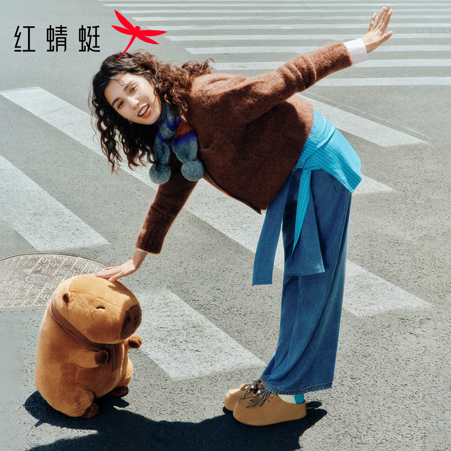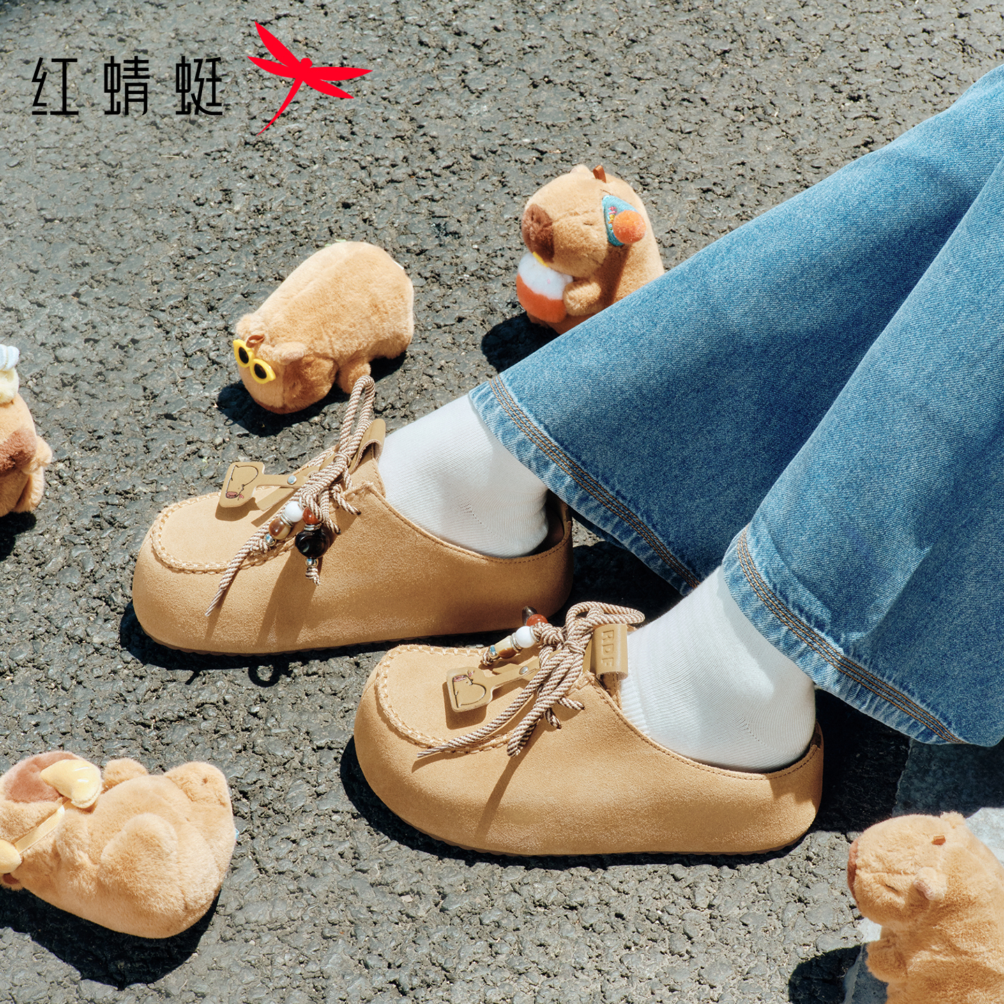 女鞋 女2025新款 一脚蹬厚底包头拖 卡皮巴拉勃肯拖鞋 红蜻蜓baby同款