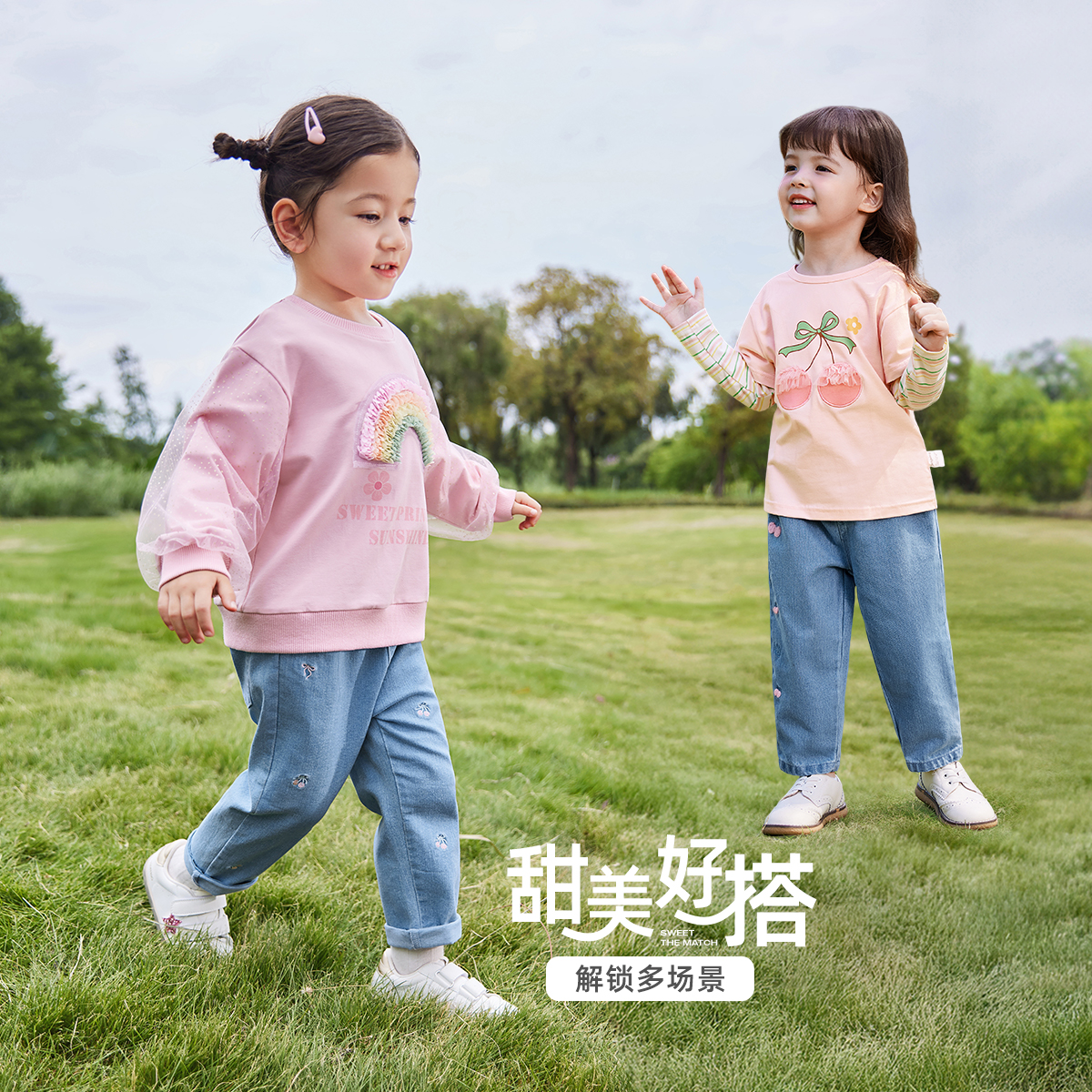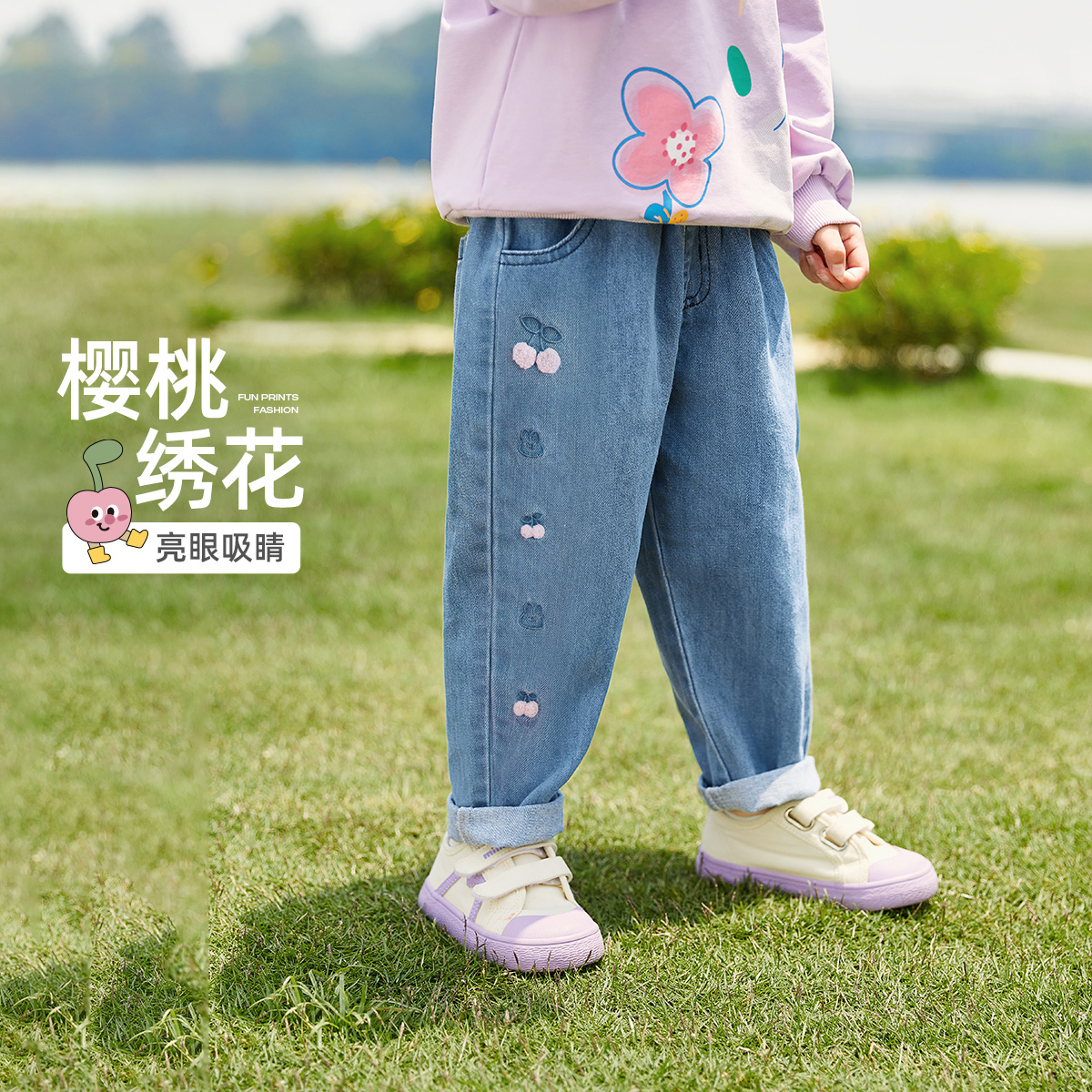 宝宝秋季 新款 长裤 儿童直筒裤 女童牛仔裤 小女孩休闲秋装 子 7A抗菌