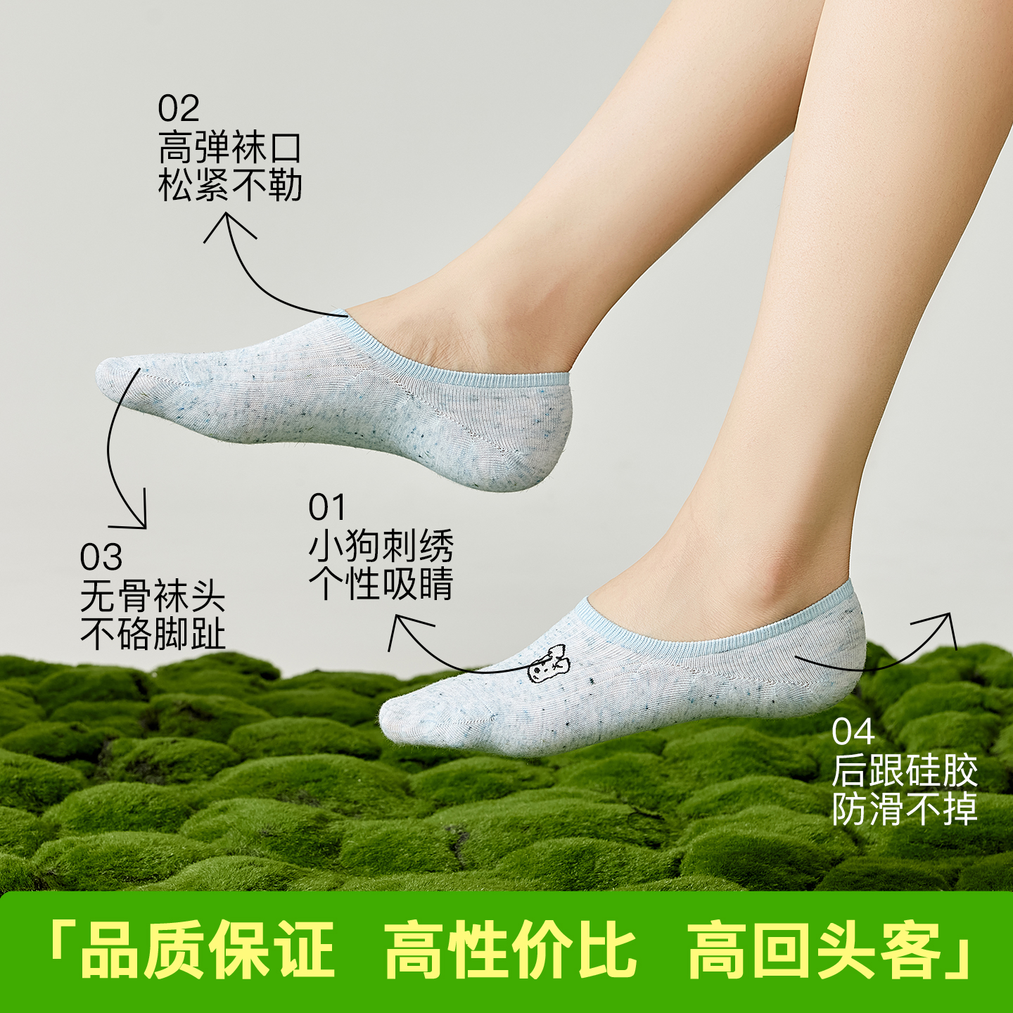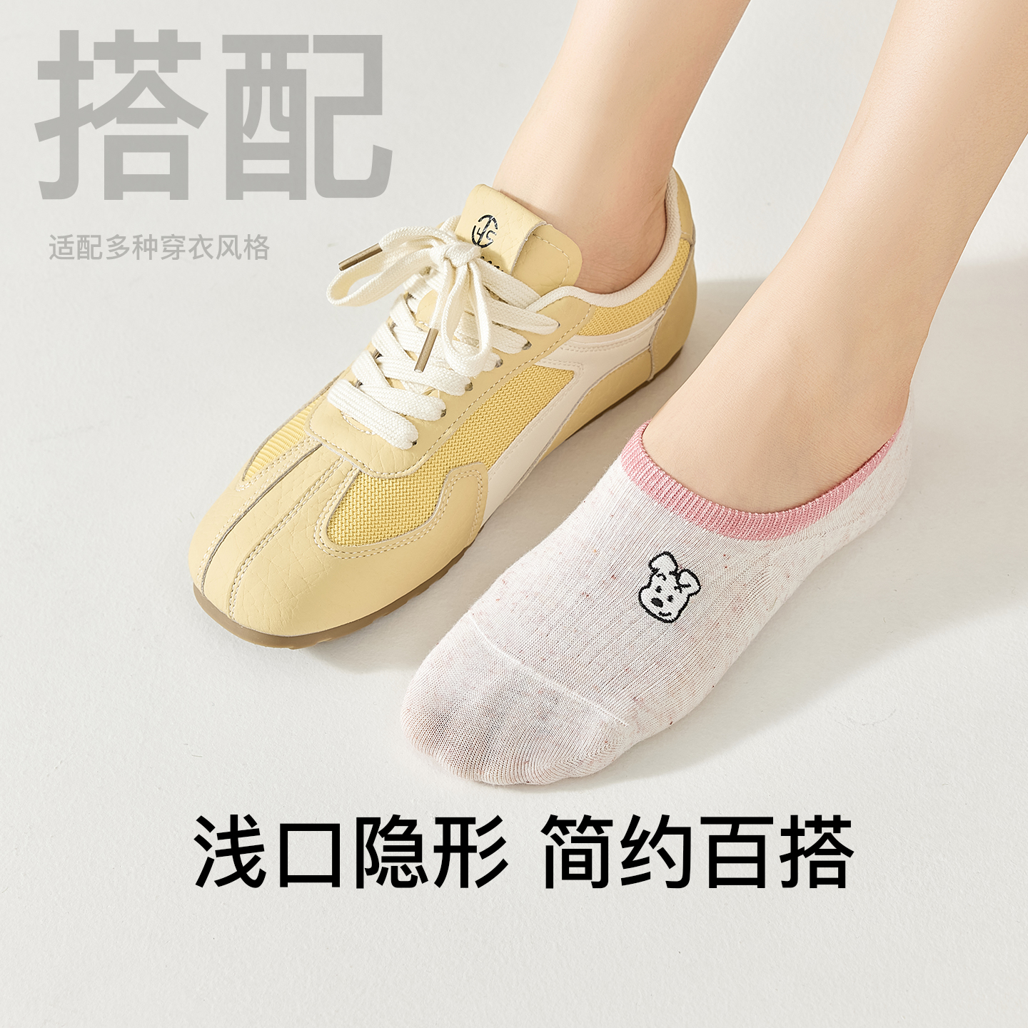 单鞋 棉质底高跟鞋 防滑脱不掉跟浅口隐形袜子 薄款 护跖骨船袜女夏季