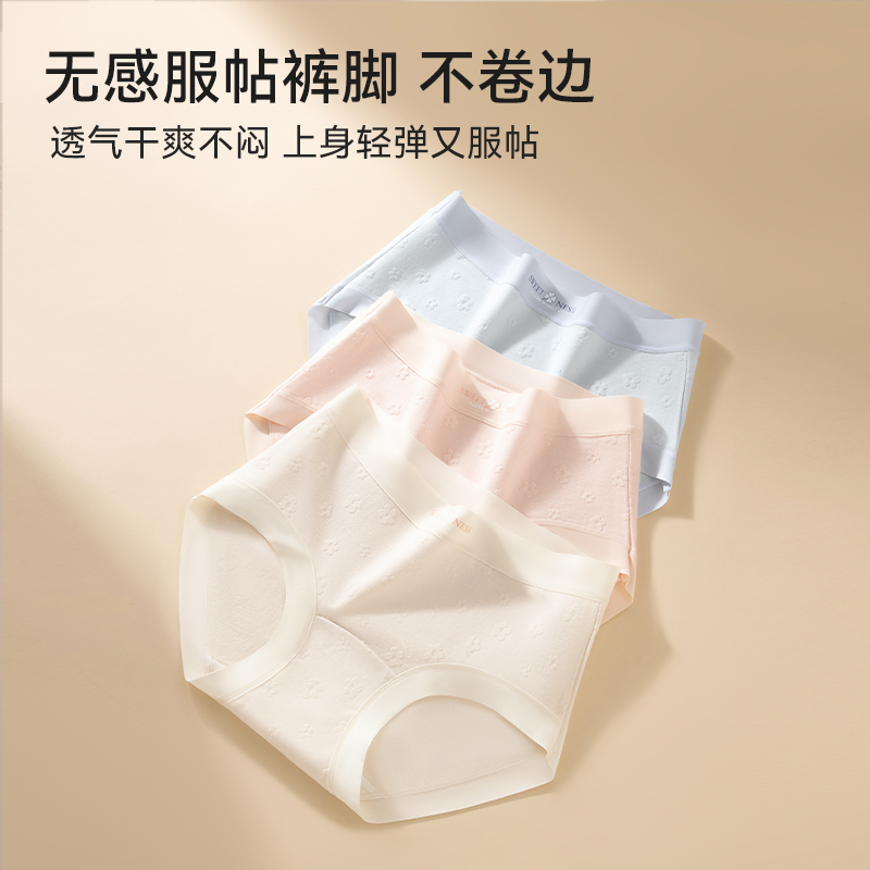 女士纯棉中腰女生内裤 不夹臀抗菌内裤 三角裤 新款 短裤 全棉时代内裤