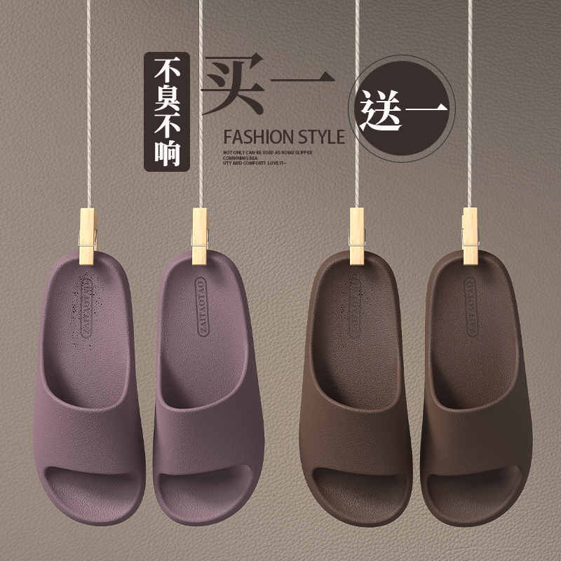 男夏 家居室内防滑厚底洗澡情侣EVA拖鞋 买一送一踩屎感拖鞋 女夏季