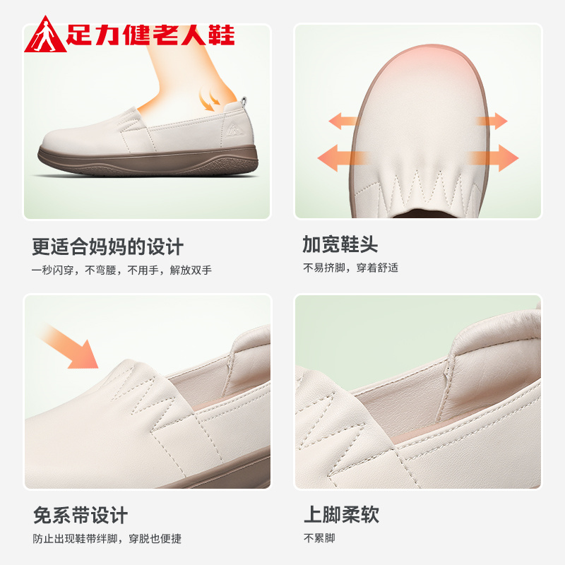 一脚蹬休闲软底妈妈不累脚单鞋 足力健老人鞋 小皮鞋 旗舰店秋季 正品