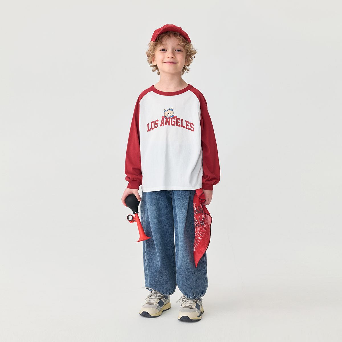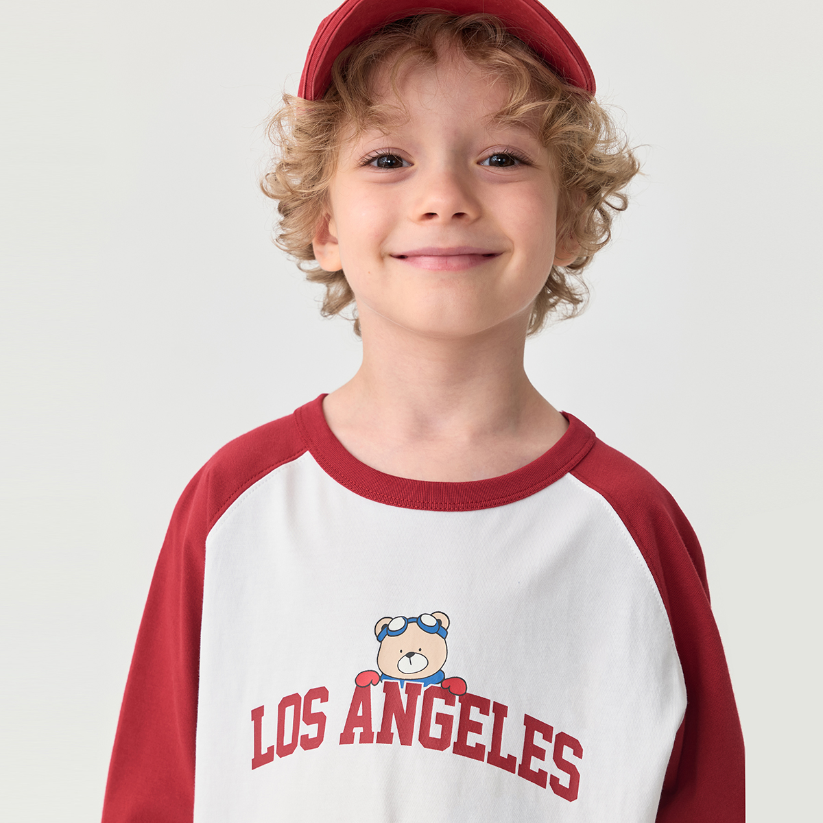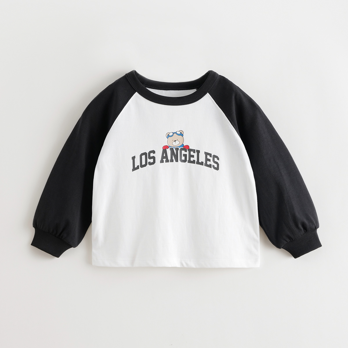 新款 马克珍妮男童美式 上衣秋装 宝宝长袖 551123 复古字母小熊T恤