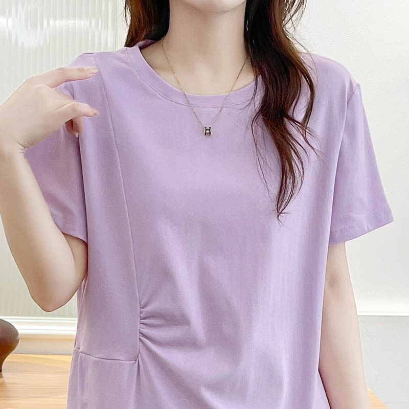 夏装 T恤2025新款 胖mm不规则独特超好看显瘦上衣 正肩圆领短袖 大码