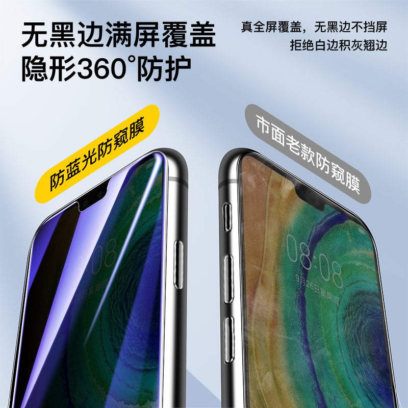 适用华为mate30防窥膜防爆抗指纹保护meta30钢化膜全屏全覆盖无白边huawei手机膜防摔高清屏保全包边蓝光防窥