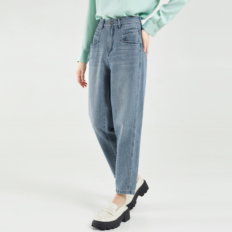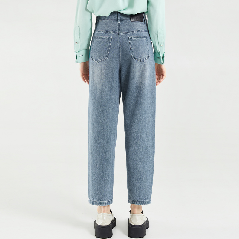 女冬40933286 100%棉复古高腰阔腿直筒牛仔裤 艾诺丝雅诗 建模裤