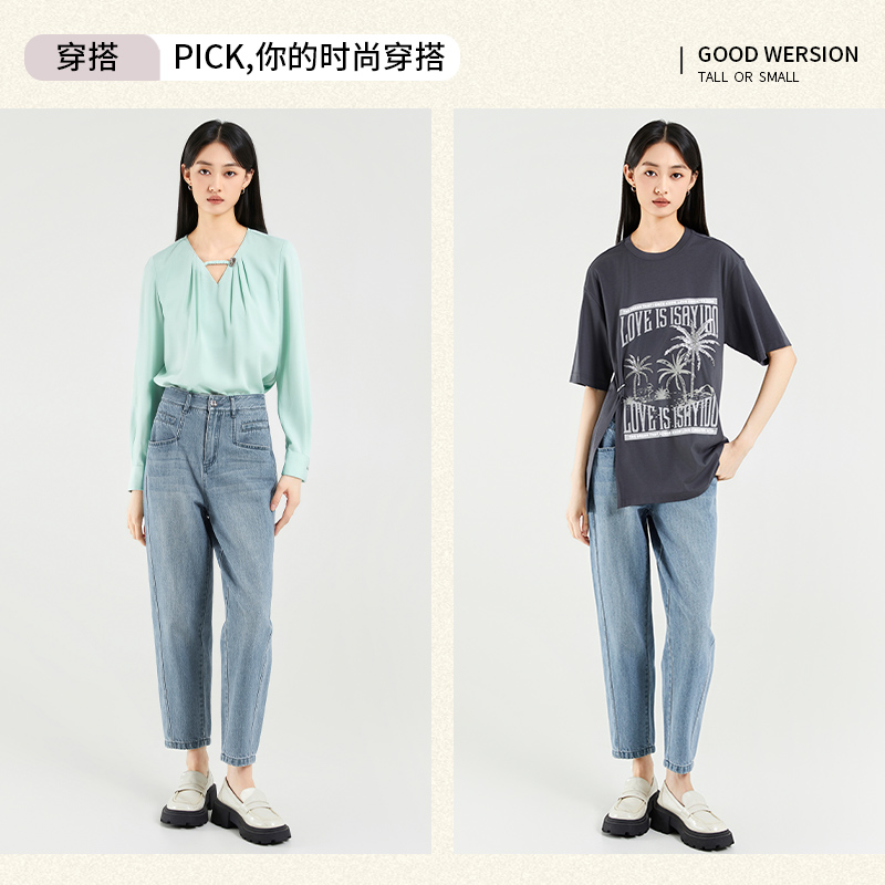 小个子高腰烟管裤 宽松显瘦九分裤 女春秋新款 KZH真维斯直筒牛仔裤