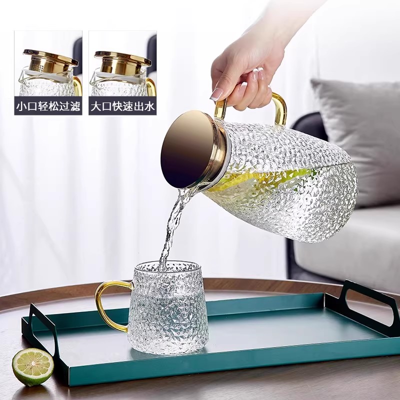 冷水壶玻璃耐高温家用冰箱大容量食品级凉白开杯耐热防摔扎壶套装