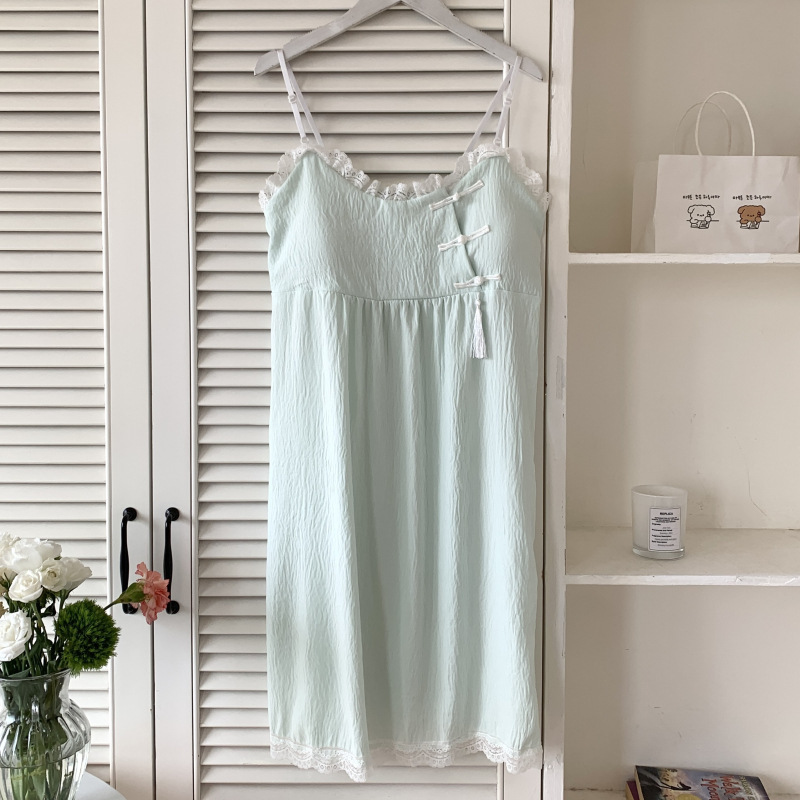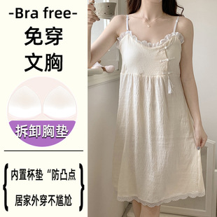 跨境睡衣女夏季 国风少女家居服可外穿 云朵棉吊带睡裙带胸垫新中式