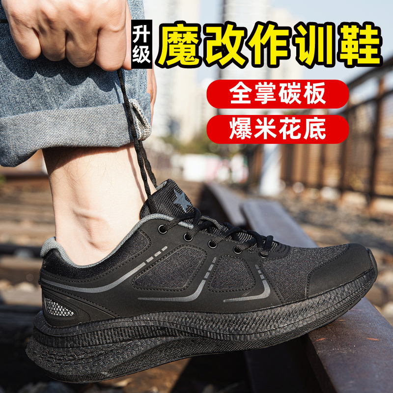 超轻耐磨透气消防跑步胶鞋 作训黑色体能训练鞋 魔改体能新式 正版