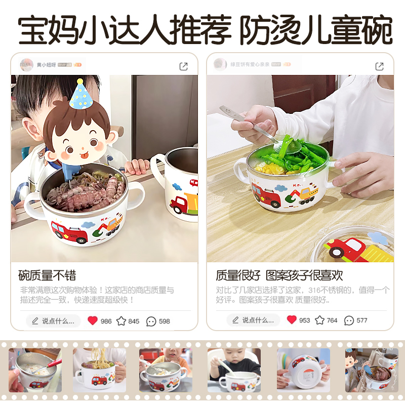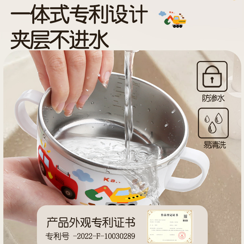 小学生汤碗饭盒餐具带手柄吃饭碗宝宝专用碗316不锈钢保温儿童碗