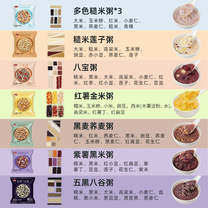 燕之坊五谷杂粮粥100g 9袋八宝粥米杂粮原材料早餐粥腊八粥t