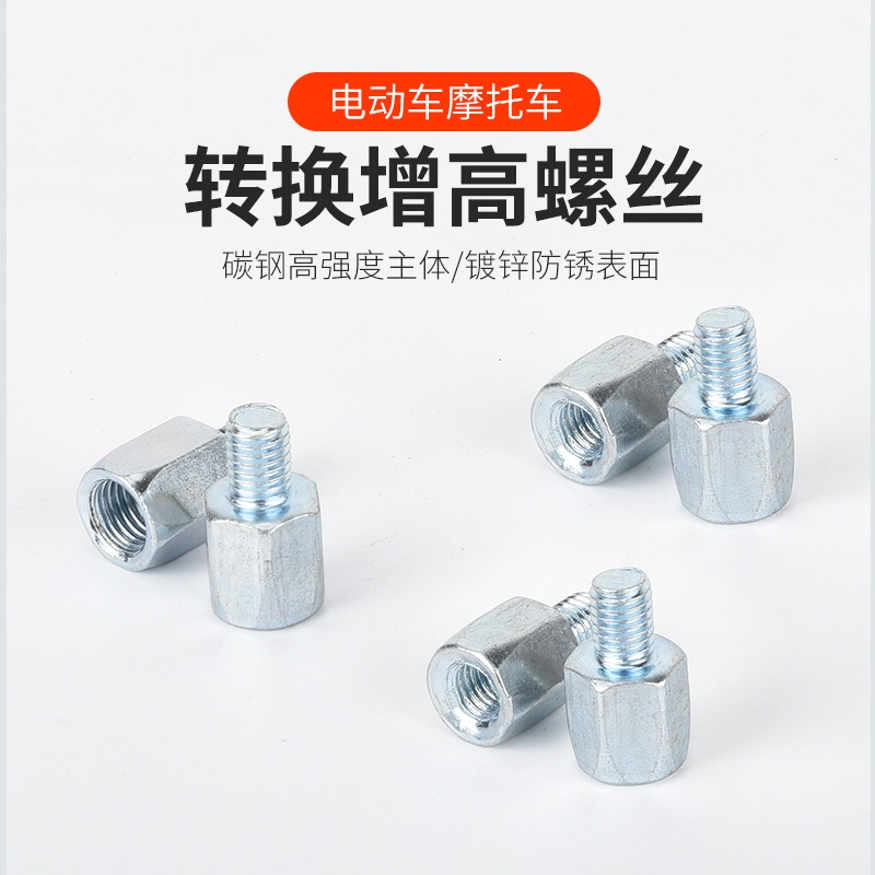 适用爱玛电动车后视镜转接螺丝安装 雨棚增高接头手机支架反牙倒丝